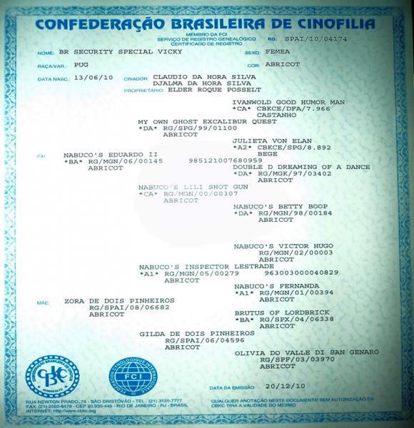 Home / Nossas Raças / Pug / Br Security Special VickyPedigree Br Security Special Vicky SPAI/10/04174 13/06/2010 - (BA) Nabuco's Eduardo II (DA) My Own Ghost Excalibur Quest (CA) Ivanwold Good Humor Man (A2) Julieta Von Elan (CA) Nabuco's Lili Shot Gun (DA) Double D Dreaming Of A Dance (DA) Nabuco's Betty Boop Zora De Dois Pinheiros (A1) Nabuco's Inspetor Lestrade Nabuco's Victor Hugo (A1) Nabuco's Fernanda Gilda De Dois Pinheiros (BA) Brutus Of Lordbrick Olivia Do Valle Di San Genaro Fotos Documentos ou Certificados