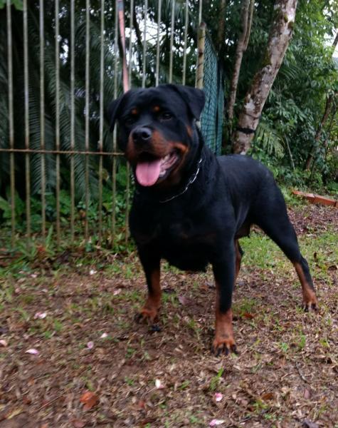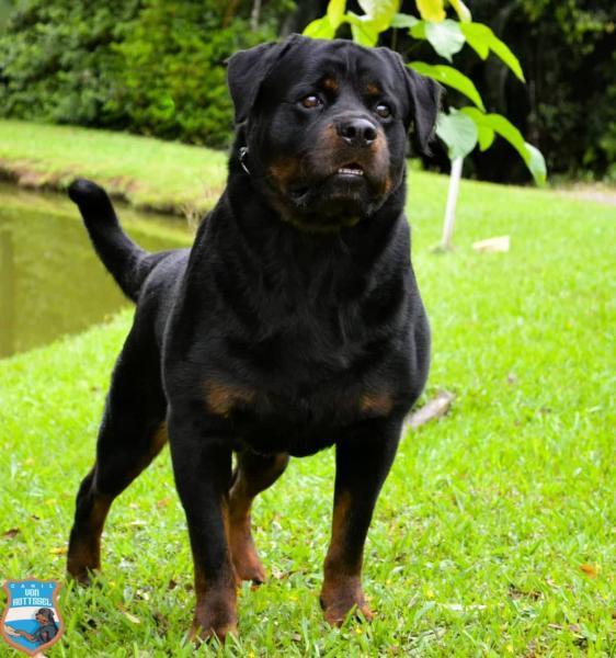 No Brasil o primeiro exemplar registrado pela Confederação Brasileira de Cinofilia (CBKC) foi importado da Alemanha em 1965. Durante muito tempo, os rottweilers permaneceram como ilustres desconhecidos no país. Mas bastou eles começarem a ganhar popularidade na década de 80, que a raça explodiu nos anos 90, tornando-se o cão mais registrado no Brasil em 1995. Atualmente, a “febre” do rottweiler vem diminuindo gradualmente, o que é motivo de comemoração para os muitos criadores. Afinal, quando uma raça fica na “moda” por muito tempo, logo parecem comerciantes oportunistas que abrem canis sem a menor preocupação com a qualidade ou saúde dos animais. Acasalando animais com defeitos genéticos, usando cadelas jovens demais e não respeitando nenhum tempo de descanso entre o cio das fêmeas, esses comerciantes colocam em prática as chamadas “fazendas de filhotes” para o prejuízo da raça.