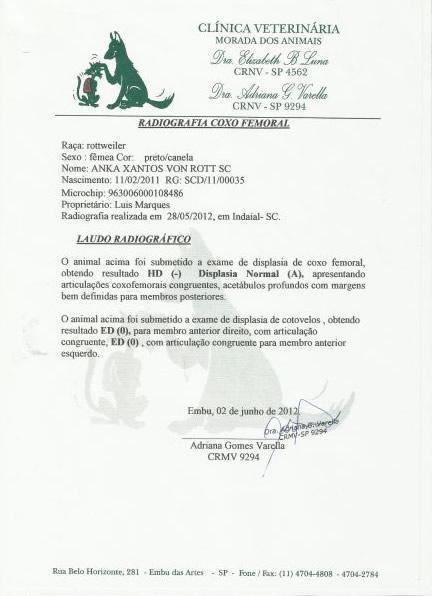 Home / Nossas Raças / Rottweiller / Anka Xantos Von RottPedigree Anka Xantos Von Rott HD- [?] ED0 [?] CBKC SCD/11/00035 11/02/2011 - (CA) Xantos Fenno Von Rottssel HD- [?] ED0 [?] Fenno vom Hause Edelstein Brando von Kelemen Zita Haus of Lazic (CG) Nixie Apoolo Von Ebersberg HD- [?] (A2) Hannegen´s Appolo (A1) Xante Escudo Von Ebersberg Andorra Franz Rottweiler HD+/- [?] HECTOR FRANZ ROTTWEILER PANZER 2 FRANZ ROTTWEILER KINDA FRANZ ROTTWEILER ASTRIT CHEFC. VOM YOROGUS GREEK Chef Fanton Von Olivio HD- [?] DALILA ATHILLA VON HAUS TANNENHOF Fotos Exames