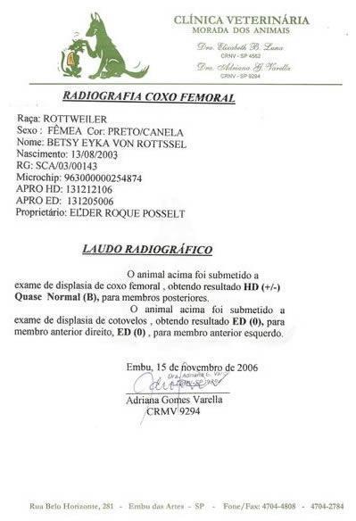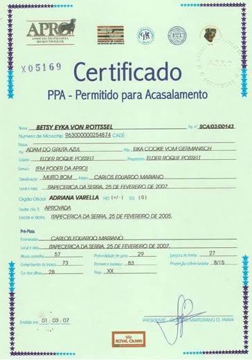Home / Nossas Raças / Rottweiller / (A2) Betsy Eyka Von RottsselPedigree (A2) Betsy Eyka Von Rottssel HD+/- [?] ED0 [?] CBKC RG:SCA/03/00143 Títulos: Jovem Campeã, Campeã, Grande campeã 13/04/2003 14/02/2014 Adam Do Gruta Azul Athila Sir Von Cooper Astro De Los Pinhales July Do Rottshire Ally de Jessi Wolff BO 117TH Vom Macm Dolly Dolf Buster Von Truim Eyka Cookie von Germanisch HD- [?] Fantasa Tangerine Man Cuidado Street Life of Schleswig (A6) Fantasa Scarlet O´Hara Frestani´s Luna (A6) Varus Von Wolfsberg Evi Von Der Mauth Fotos Exames Documentos ou Certificados