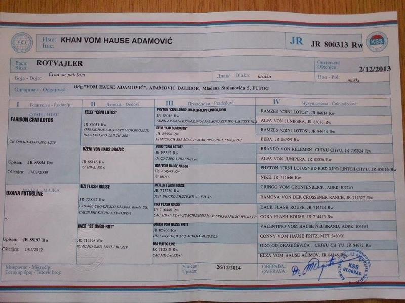 Home / Nossas Raças / Rottweiller / Alice Khan Kaiserwappen Pedigree Alice Khan Kaiserwappen HD+/- [?] ED0 [?] RJG/15/04009 16/01/2015 - Khan Vom Hause Adamovic *A6* Faridon Crni Lotos - - Oxana Futogline Uzi Flash Rouse HD+/- [?] ED1 [?] Ines ''Se Ungo-Rot'' HD+/- [?] ED1 [?] Dakota Astor Kaiserwappen Astor Von Junipera HD- [?] ED0 [?] Waro von Hause Sommer Volga OD Dragicevica - - - Fotos Documentos ou Certificados